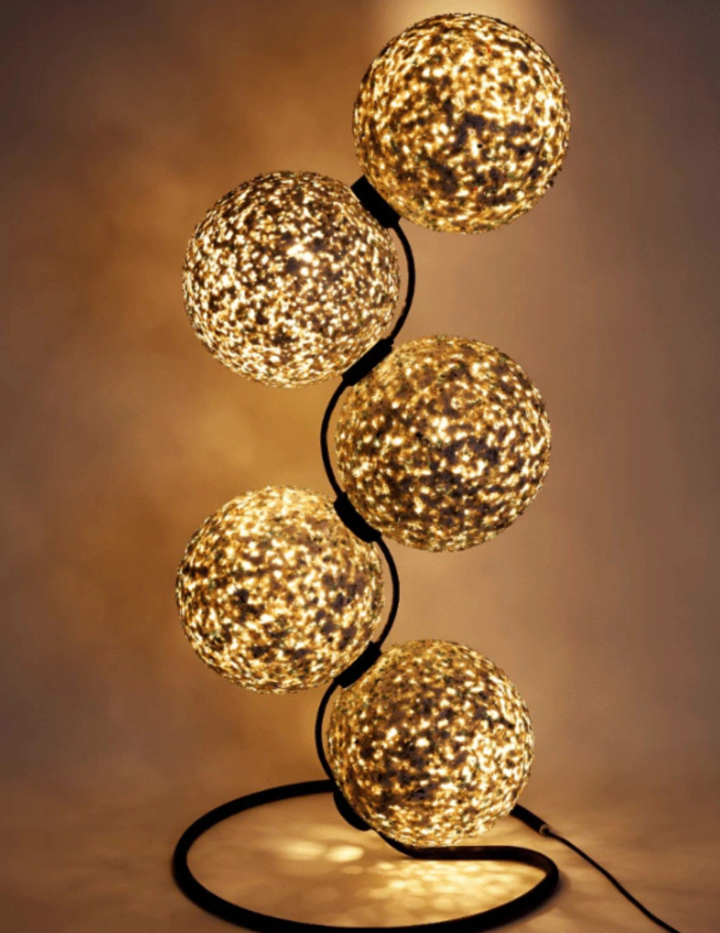Son esferas combinadas en forma de racimo que generan un cálido ambiente para eventos, locales, edificios y diversos espacios amplios.