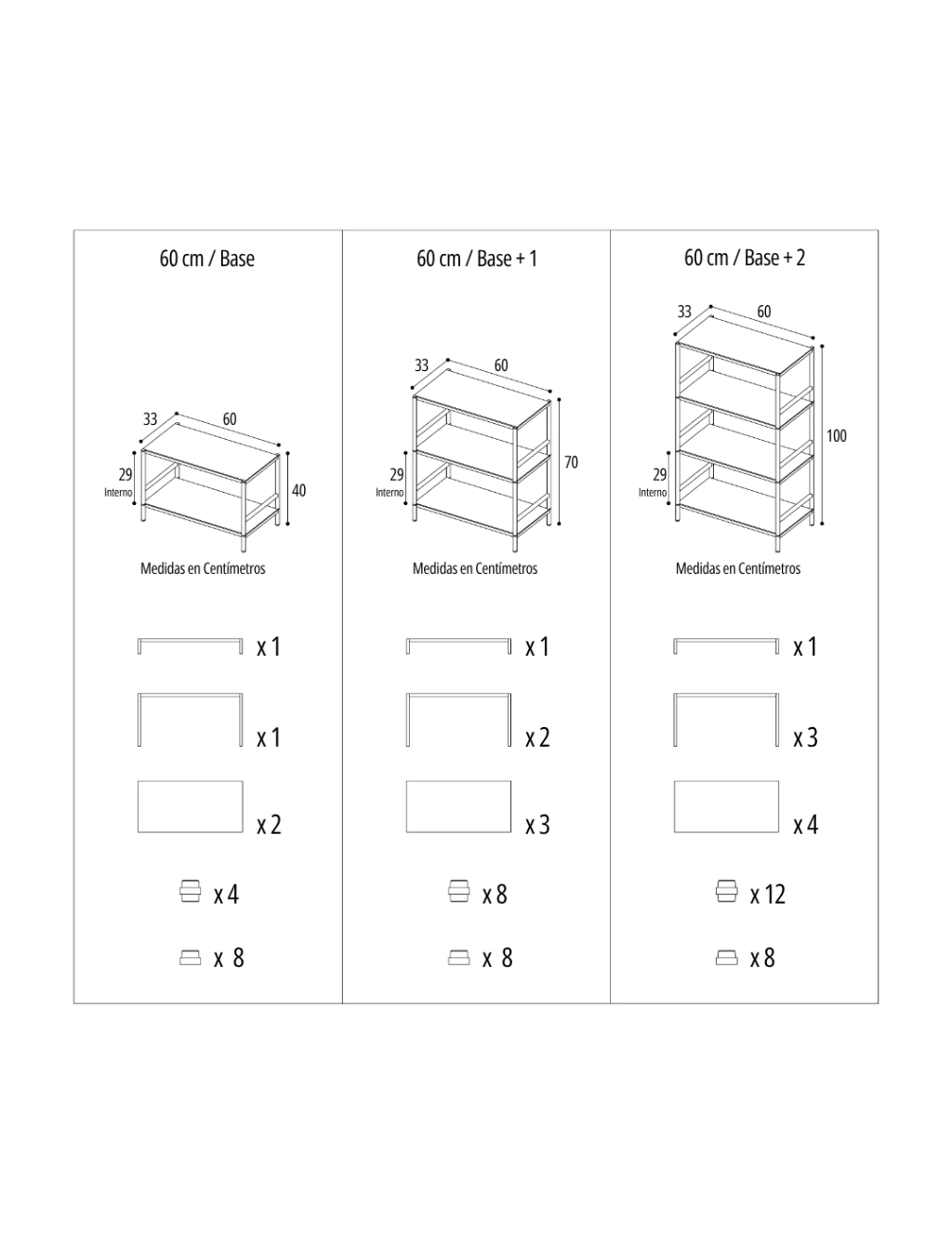 Tamaño desarmado en caja BASE, BASE+1 O BASE+2: